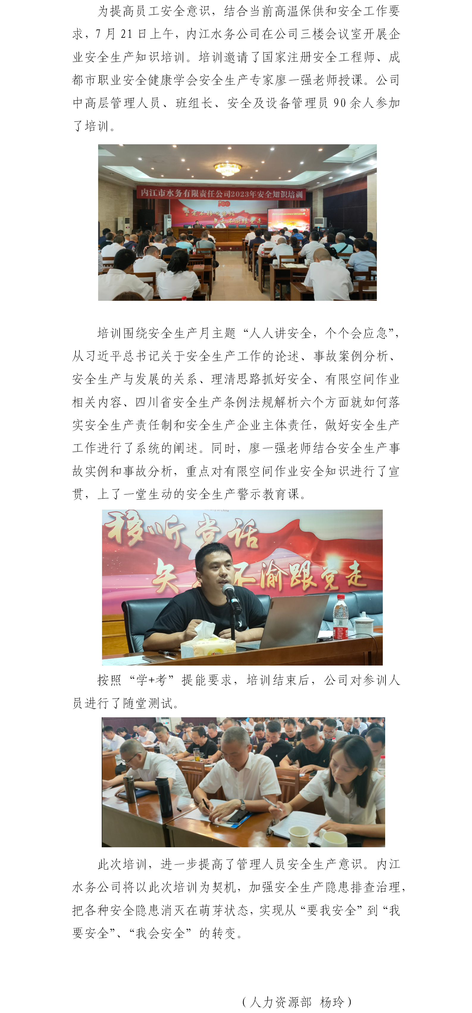 內(nèi)江水務(wù)公司:加強(qiáng)安全培訓(xùn),樹(shù)牢安全意識(shí)