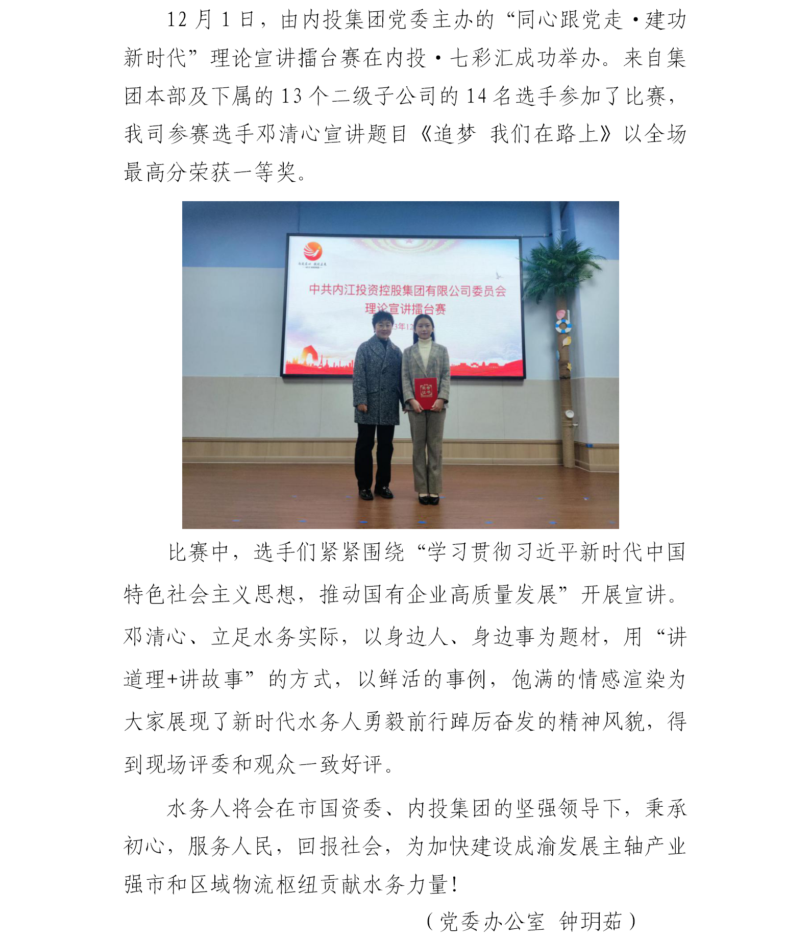 砥礪奮進(jìn)水務(wù)人,同心共筑新時(shí)代——水務(wù)公司榮獲內(nèi)投集團(tuán)理論演講擂臺(tái)賽一等獎(jiǎng)