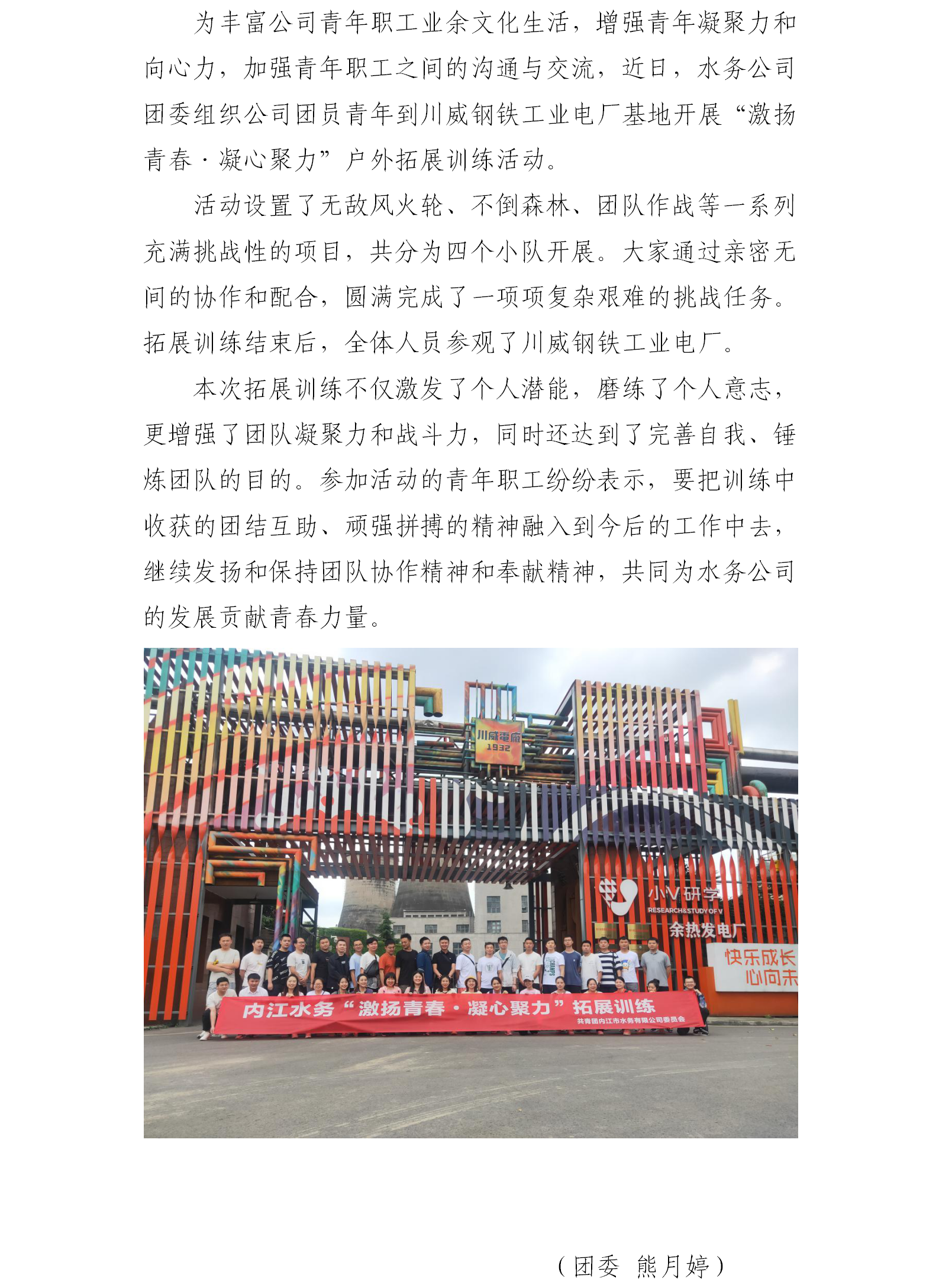 水務(wù)公司團委開展“激揚青春·凝心聚力”戶外拓展訓(xùn)練活動
