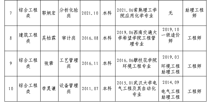 經審核,魯亞梅同志符合申報高級政工師任職資格;吳柏霖、張茜、李昊謙3名同志符合申報工程師任職資格;李斌、楊程翔、劉靈漾、李永潔、黃俊雄、曾鑫、郭炯宏7名同志符合申報助理工程師任職資格;倪勇、張雙馳2名同志符合申報助理政工師任職資格。現對其申報基本情況予以公示。公示期限自9月18日至9月22日。如有異議,請在公示期限內通過書面或其他形式向公司人力資源部反映。