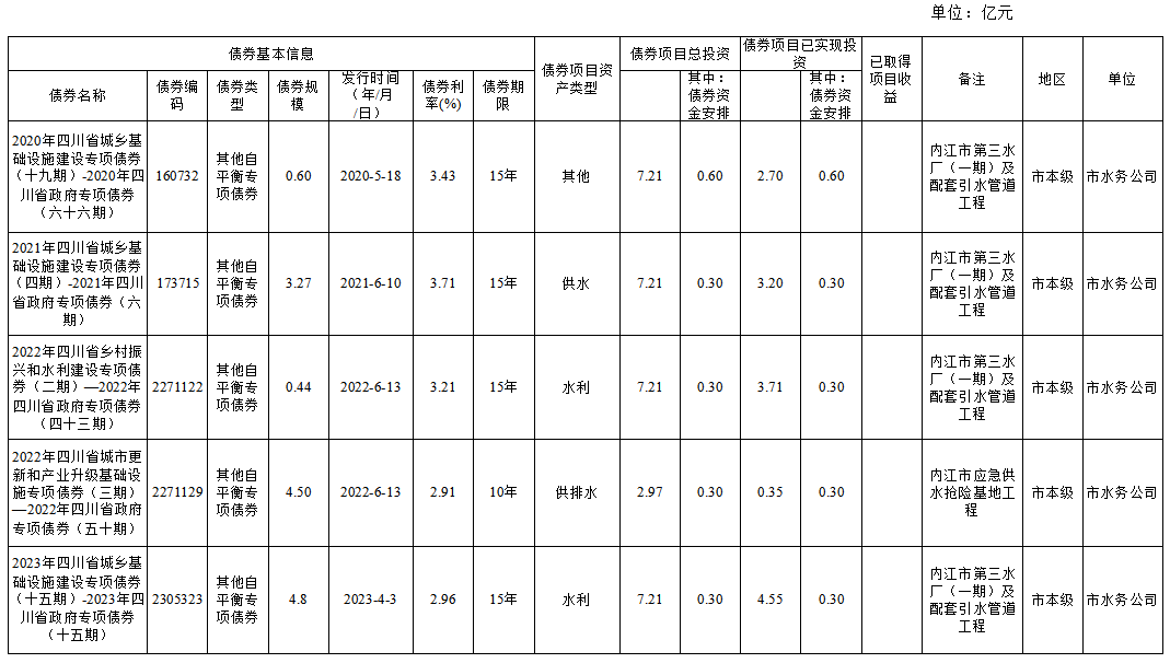 截至2024年末新增地方政府專項債券情況表