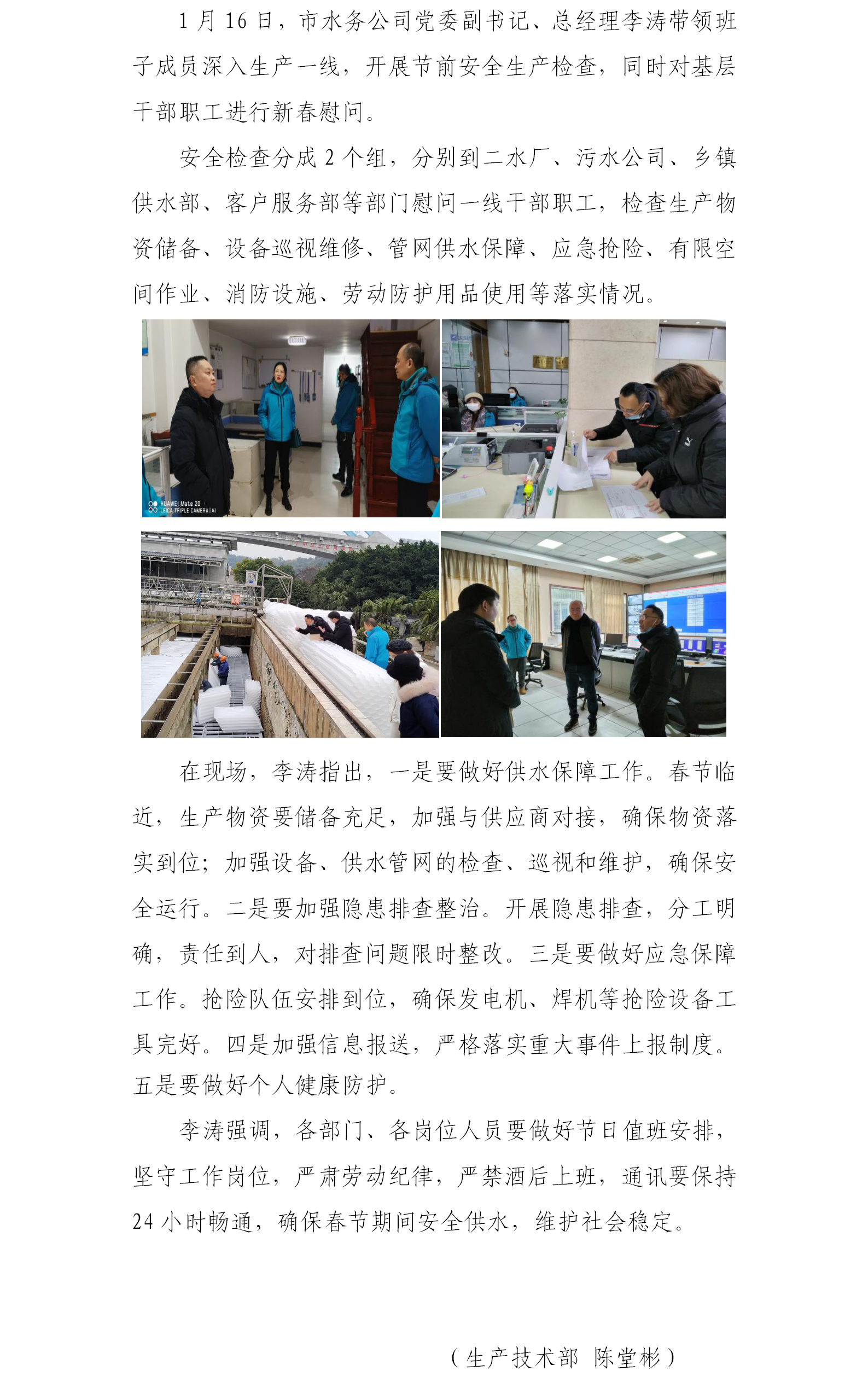 喜迎新春佳節 確保安全供水 ——市水務公司開展春節慰問檢查