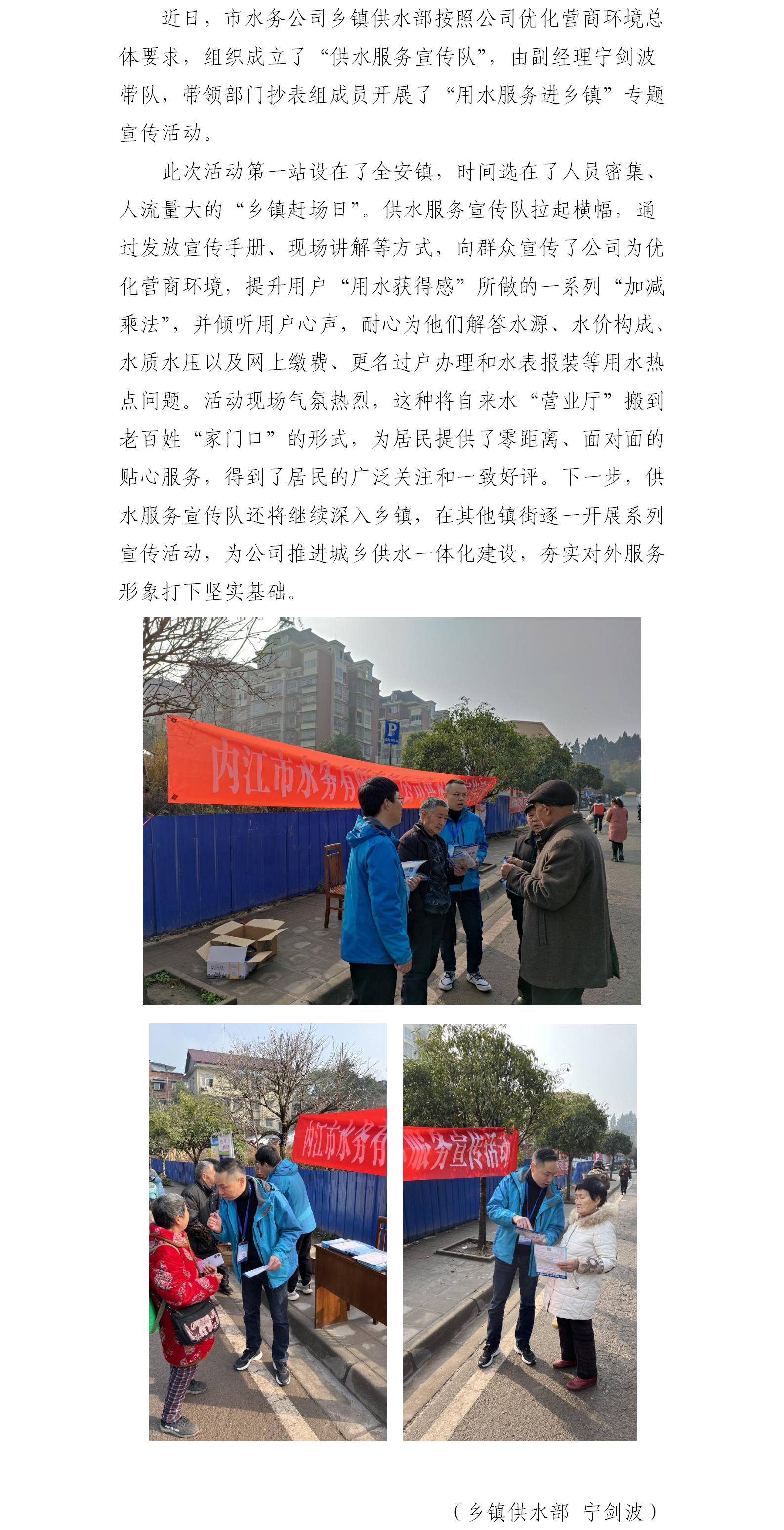 供水服務進鄉(xiāng)鎮(zhèn) 用心做好水文章