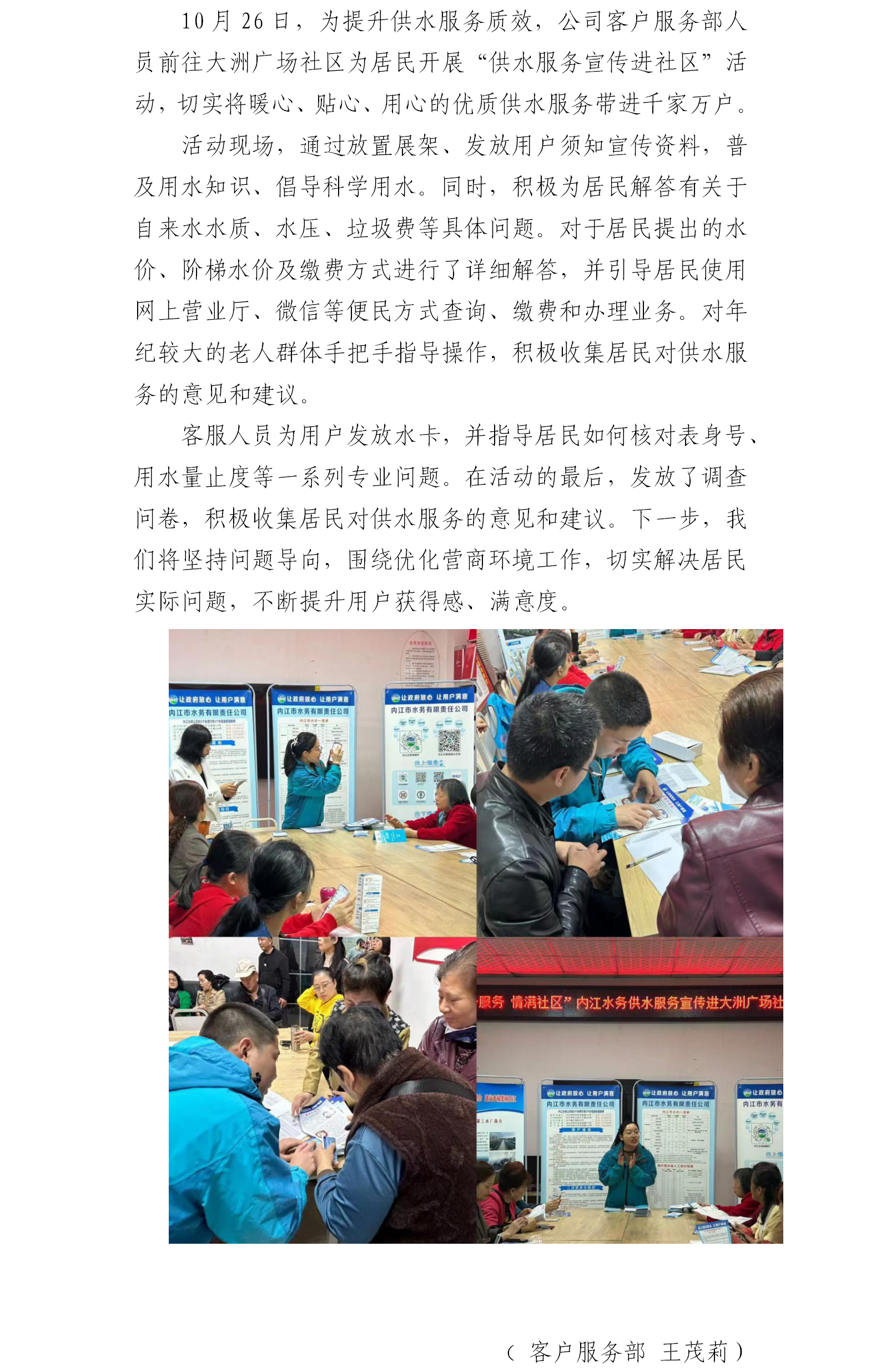 “提升服務 情滿社區”內江水務供水服務宣傳進社區