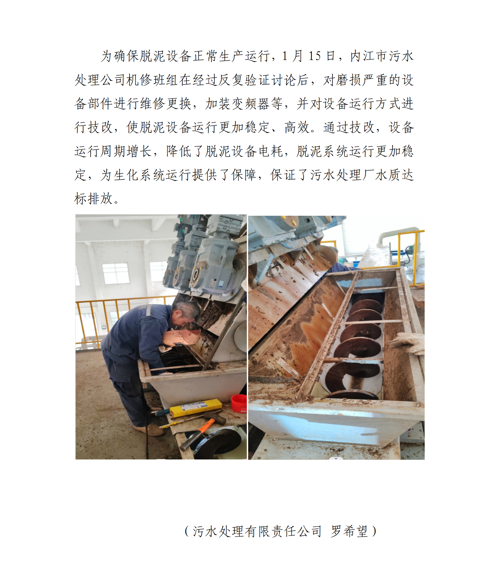 污水處理公司對脫泥設備進行技改 確保污水達標排放