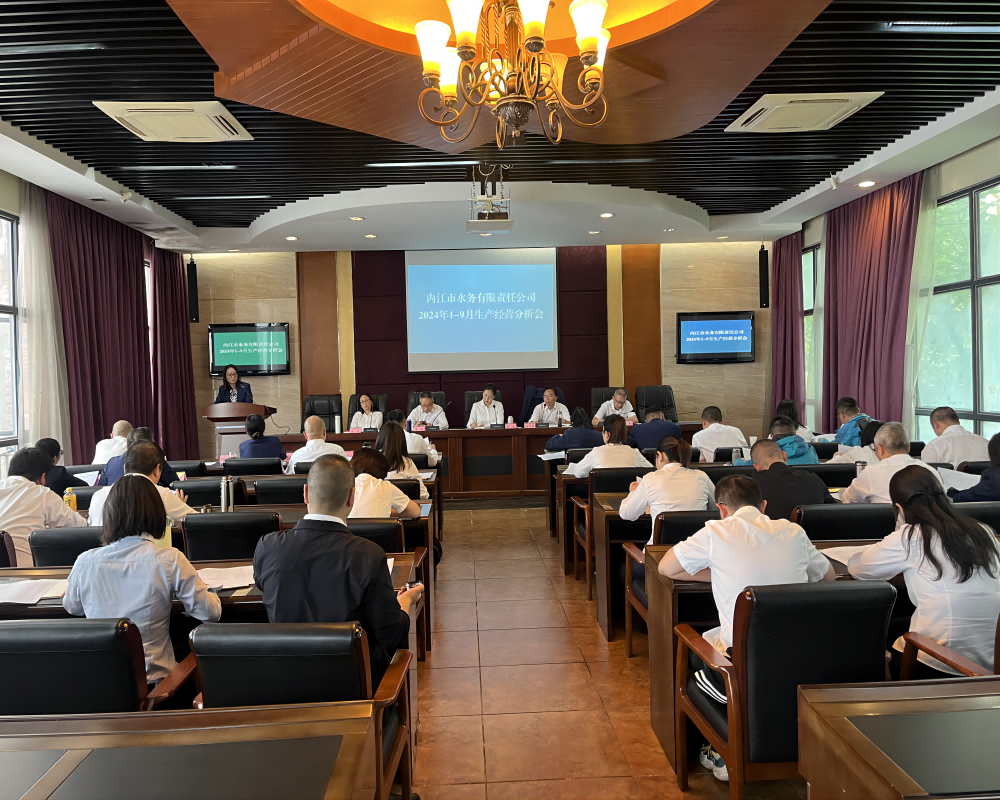 2024年10月14日下午,市水務公司在四樓二會議室召開了2024年前三季度生產經營分析會。會議由常務副總經理唐賢彬主持。公司中層及以上管理人員參加了會議。