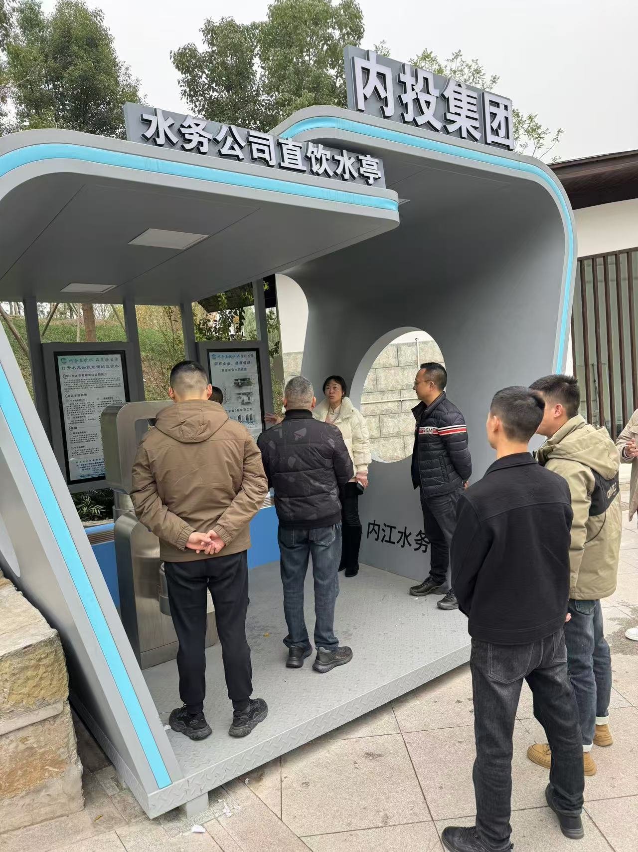 代表團實地考察了五星濕地公園直飲水亭、水木青華小區直飲水設施及內江六中直飲水泵房等示范區域,詳細了解內江市直飲水項目實施細節與技術方案。通過現場觀摩,南江縣代表對直飲水設備性能、運營管理模式及市場前景有了直觀認識,并高度評價內江的成功實踐。