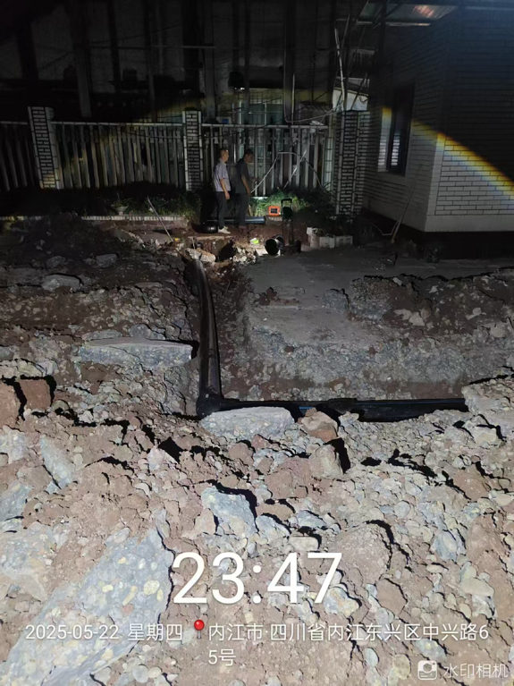 搶修現(xiàn)場,維修人員面對夜間視線不佳、高溫作業(yè)、現(xiàn)場環(huán)境復(fù)雜等多重挑戰(zhàn),爭分奪秒、迎難而上,通宵達(dá)旦開展搶修工作。次日凌晨3點(diǎn)58分,維修人員熊弈在工作群里發(fā)布消息:“東興區(qū)政府DN150鋼管因漏點(diǎn)在建筑下方無法維修,已從旁改管繞過漏點(diǎn),160PE管改管約60米,63PE管改30米,加裝50銅閘閥一只,現(xiàn)已修復(fù)通水?!敝链?,搶修工作圓滿結(jié)束,恢復(fù)正常供水。