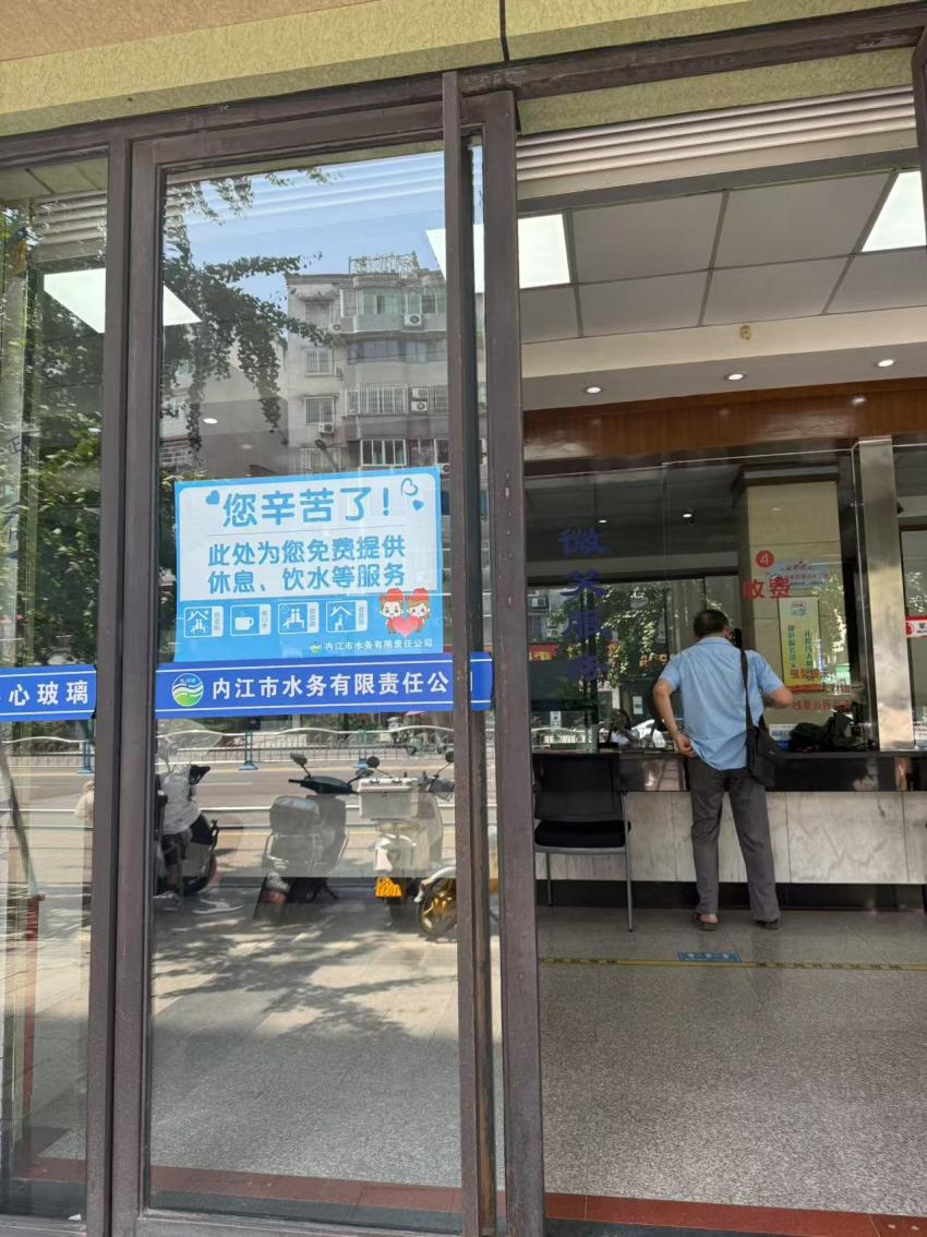 依托公司營業(yè)收費(fèi)大廳,公司第三黨支部主動作為,在醒目位置張貼“熱可納涼、渴能飲水、累可歇腳等標(biāo)識標(biāo)語,為外賣小哥、快遞員、環(huán)衛(wèi)工人等戶外工作者增設(shè)“水務(wù)清涼角”,免費(fèi)提供納涼避暑區(qū)域,將營業(yè)廳打造成清涼港灣,為他們送去一份“清涼”,傳遞一份“溫情”。