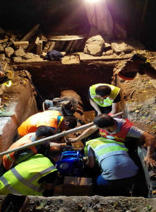在管網(wǎng)規(guī)劃管理部、物資供應部、豪盛管道安裝公司及工會等部門的緊密配合下,5月17日晚22時,管網(wǎng)運行部按改造實施方案對平安路兩側(cè)3臺蝶閥進行了更換。為縮短停水時間,施工前管網(wǎng)運行部組織召開了兩次施工分析會,制定了工作方案,并對施工現(xiàn)場提前組織開挖,設(shè)置安全圍擋、照明等安全設(shè)施,為順利實施蝶閥更換做好充分準備。施工中,維修人員們克服深夜疲勞、操作場地狹小等不利因素,特別是楊孝成,鄧軼峰、劉超、程建軍等冒著高溫天氣及氧焊的熱浪,在弱電管線交錯縱橫的狹窄空間里拆卸生銹螺栓,安裝更新蝶閥。經(jīng)過7個多小時連續(xù)作業(yè),在18日凌晨5時順利完成此次改造工作,比預期通水時間提前1個小時,保證了周邊用戶正常用水。