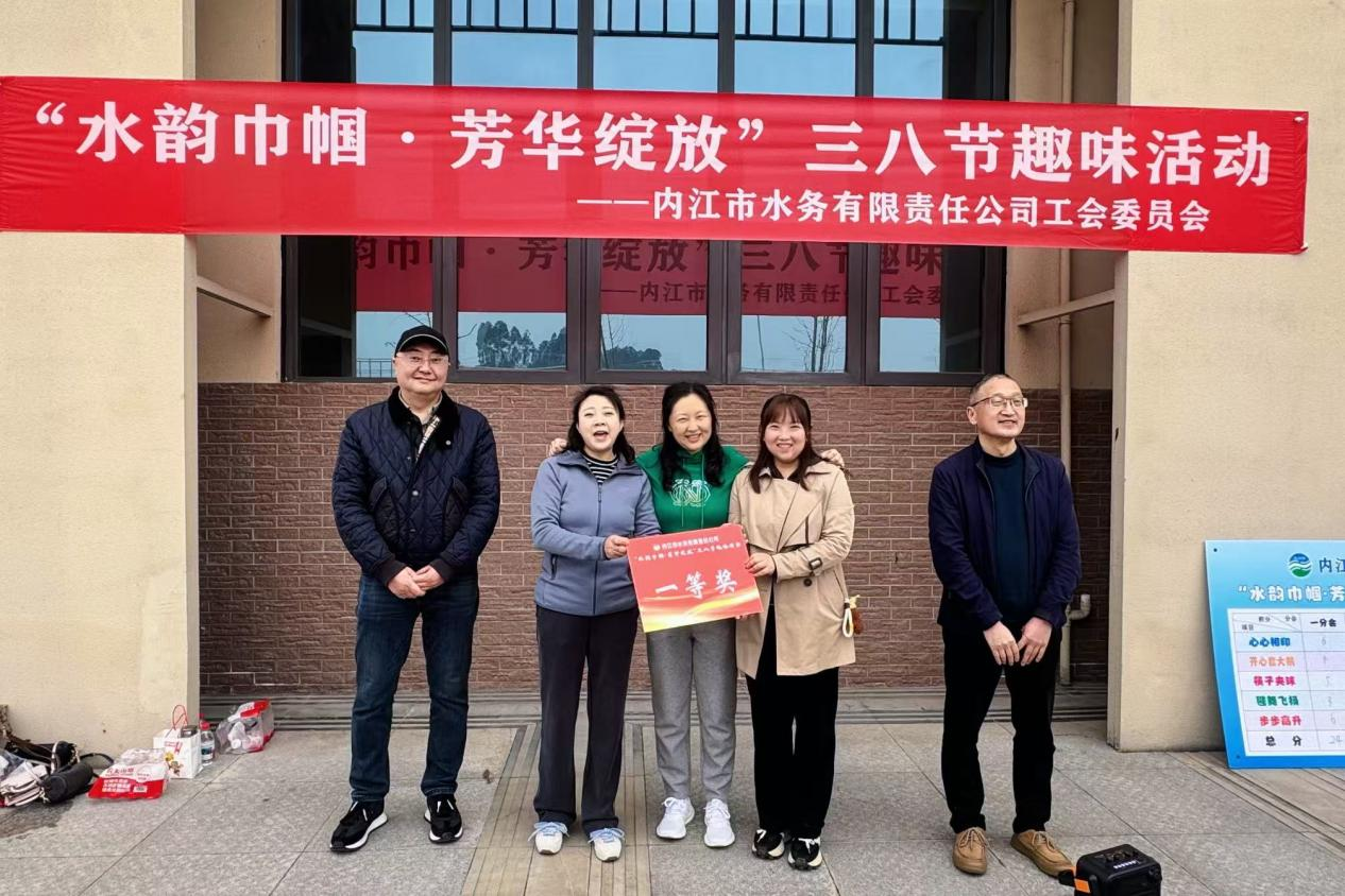 春風(fēng)送暖,芳華綻放。為慶祝“三八”國際婦女節(jié),豐富女職工精神文化生活,展現(xiàn)巾幗昂揚風(fēng)貌,3月6日上午,市水務(wù)公司工會在三水廠舉辦“水韻巾幗·芳華綻放”三八節(jié)趣味活動。公司黨委書記、董事長李濤,黨委副書記、紀(jì)委書記、工會主席杜科,黨委委員、副總經(jīng)理黃勇出席活動并為獲獎團體頒獎。