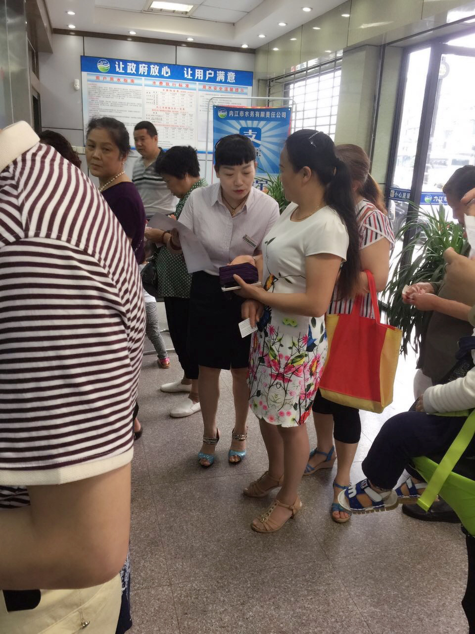 為宣傳推廣公司代收水費(fèi)業(yè)務(wù),公司客戶服務(wù)部組織賬務(wù)組的工作人員在收費(fèi)高峰期到每個(gè)收費(fèi)室進(jìn)行代收費(fèi)業(yè)務(wù)的宣傳。工作人員手拿宣傳單走進(jìn)繳費(fèi)人群中,熱情仔細(xì)給用戶講解水費(fèi)代收費(fèi)業(yè)務(wù),并用手機(jī)手把手教用戶怎么使用翼支付和支付寶手機(jī)繳費(fèi)。通過幫助用戶學(xué)習(xí)掌握手機(jī)繳費(fèi),免去用戶在酷暑和寒冬排隊(duì)繳費(fèi)的煩勞。