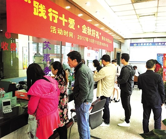 “請幫我預存800元……”“我要領口炒鍋……”1011日上午9時許,“水司”玉溪路收費廳里人潮涌動、熱鬧非凡。