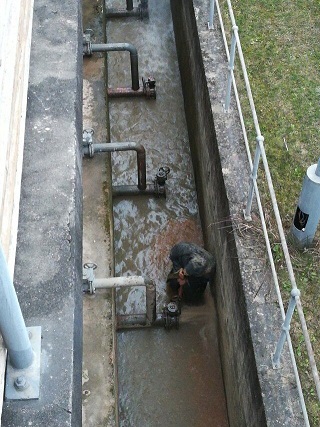 5月22日,對(duì)口灘原水濁度漲至118NTU,二水廠迎來今年第一波洪水。為了保障洪期安全供水,二水廠自4月起就開始著手應(yīng)對(duì)洪期準(zhǔn)備工作。上周,維修人員開展池底排泥閥檢查,以保證洪期排泥暢通。緊接著清洗藥池和沖洗加藥管道工作也相繼展開,7月前完成全部相關(guān)工作,為即將到來的洪期做好準(zhǔn)備。
