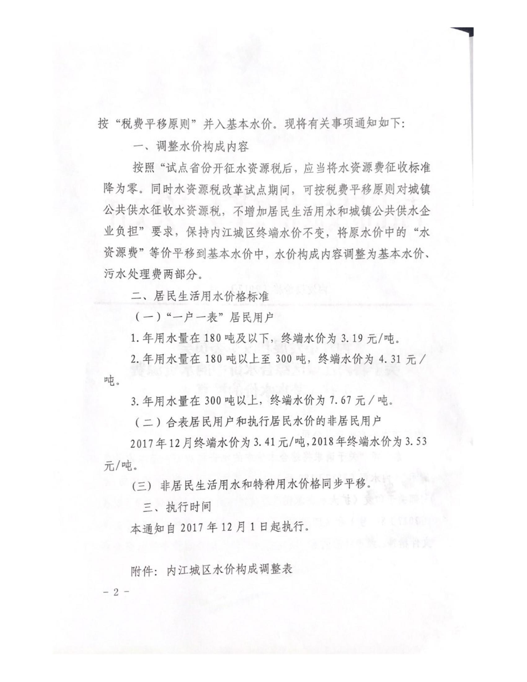 內江市發展和改革委員會關于將內江城區綜合水價中的水資源費并入基本水價的批復